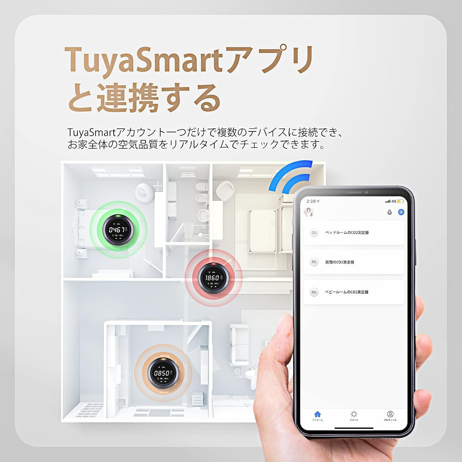 Amazon 二酸化炭素濃度計 Sparoma Co2センサー 温度測定 湿度測定 3 In 1 高精度 Ndir方式 400 5000ppm測定範囲 リアルタイム監視 高濃度警報機能 アプリ連携 データシェア コンパクト 卓上型 スタンド付き 充電式 部屋 学校 会議室 飲食店 医療施設など適用 日本語説明